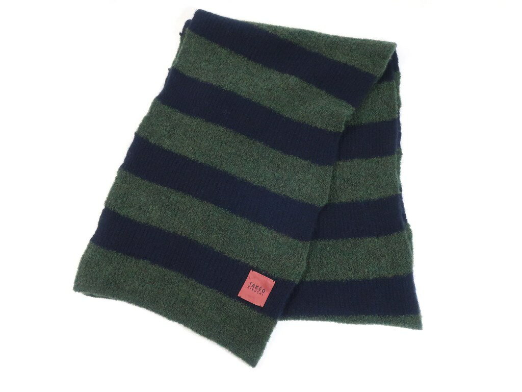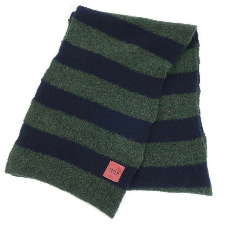 【中古】タケオ キクチ TAKEO KIKUCHI ボーダー マフラー モスグリーン×ネイビー【サイズ−】【GRN】【A/W】【状態ランクB】【メンズ】【19905-955900】[2101BPD]