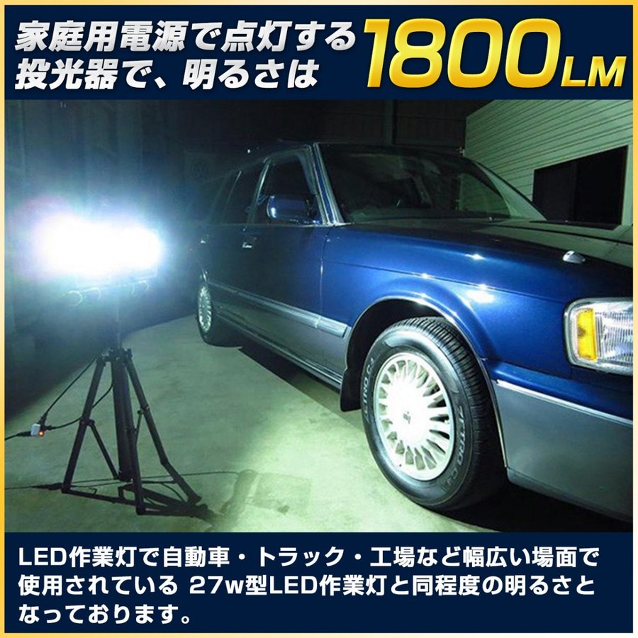 家庭用電源で点灯する投光器で、明るさは1800ルーメン。
