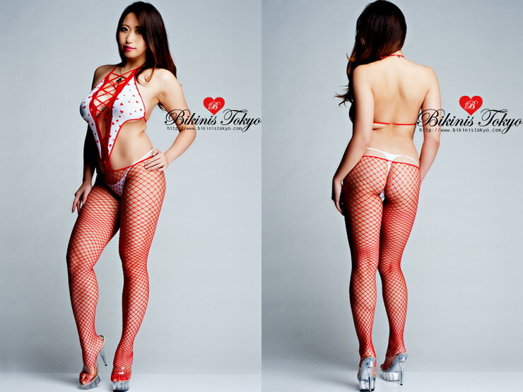 赤い網タイツにハート柄のトップスが繋がった個性的なアイテムです白に赤いハート柄で乙女なアイテム。