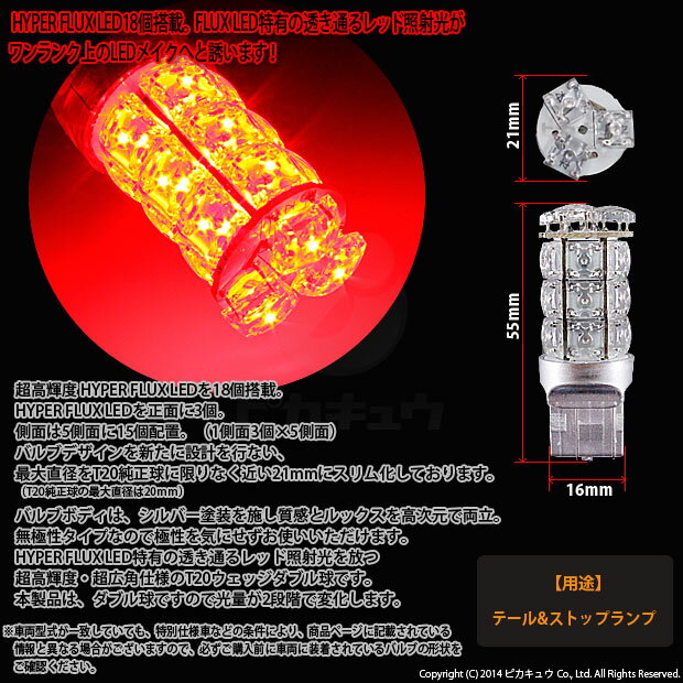 ピカキュウ,LED専門店ピカキュウ,LEDバルブ,SMD,LED,T20,HYPER FLUX LED 18連ウェッジダブル球,LEDカラーレッド,テール&ストップランプ,ブレーキランプ,ストップランプ,SUZUKI,スズキ,JIMNY,ジムニー, WILD WIND,ワイルドウインド,suzuki,jimny,wild,wind,JB23W 6型対応